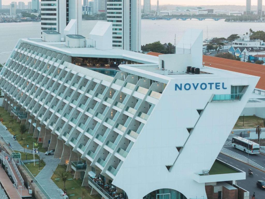 No coração cultural do Recife, dentro do moderno complexo Porto Novo Recife e a poucos passos do Marco Zero, o Novotel Recife Marina impressiona com arquitetura inspirada em um transatlântico ancorado. São 300 apartamentos, rooftop, piscina com borda infinita, spa, restaurante, salas de eventos e Kids Club — uma estrutura completa para negócios ou lazer. Com vista para o mar, une conforto, sofisticação e acesso direto à vibrante cena cultural da cidade.